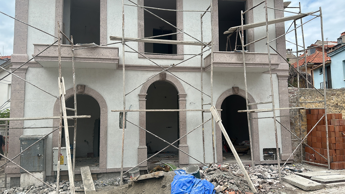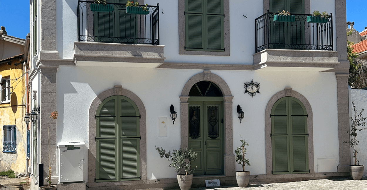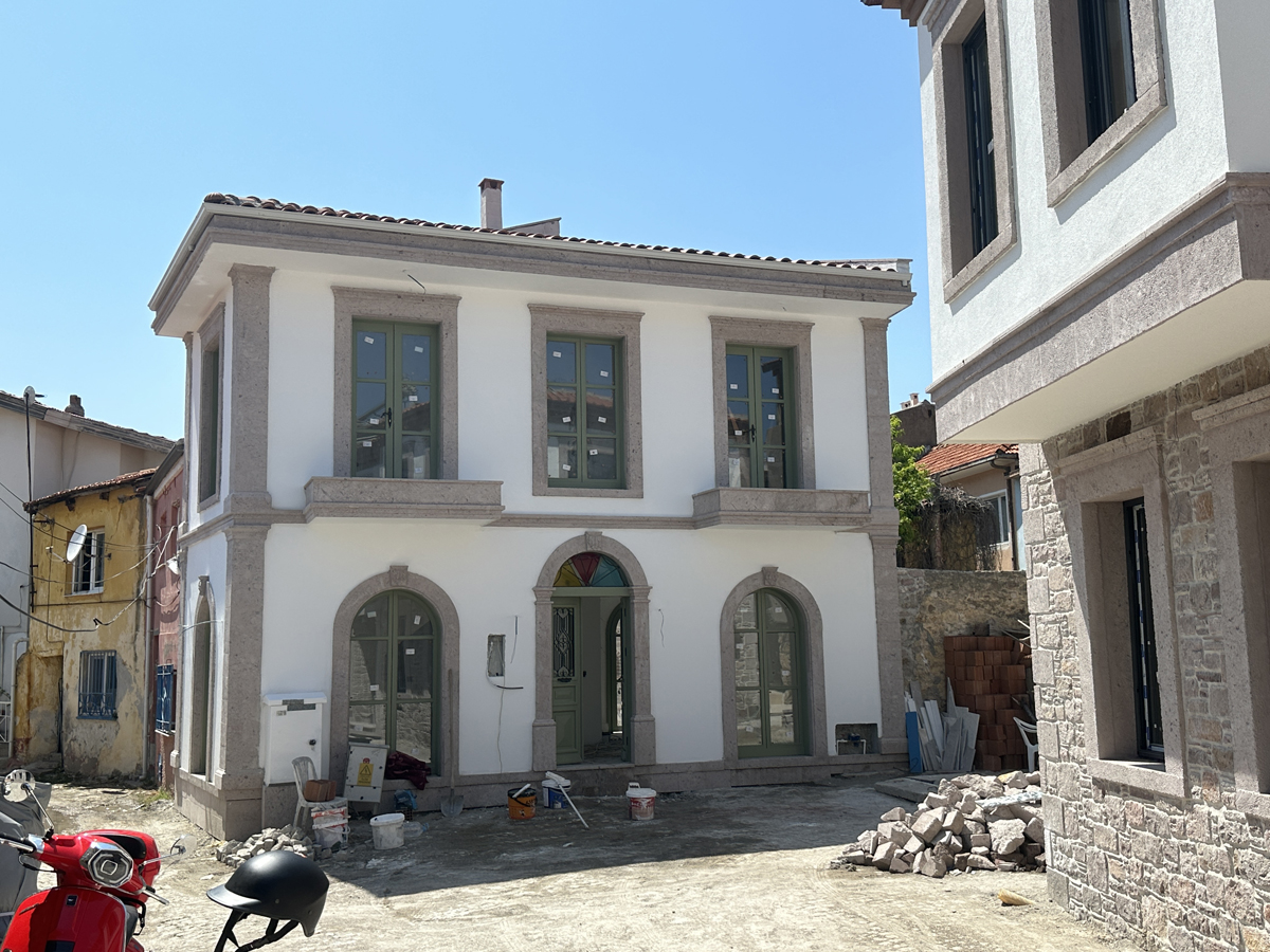 YVALIK MERKEZİ KENTSEL SİTİ İÇERİSİNDE YER ALAN KARAHAN EVİ GELENEKSEL AYVALIK DOKUSUYLA MODERN MİMARİYİ BİRLEŞTİRİP BİR SENTEZ HALİNE GETİRMİŞTİR.MALZEME VE RENK SEÇİMİ GELENEKSEL AYVALIK EVLERİNDEN REFERANS ALINARAK UYGULANMIŞTIR.AHŞAP VE ZEYTİN RENGİ DOĞRAMALAR BUNUN EN GÜZEL ÖRNEĞİDİR.BÖLGENİN GELENEKSEL TAŞI OLAN SARIMSAK TAŞI CEPHEDE KULLANILARAK TÜM MİMARİ ÖĞELER TAMAMLANMIŞ OLUR.